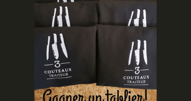 Participez à ce jeu concours gratuit et courez la chance de gagner 6 tabliers avec logo « 3 couteaux ».
