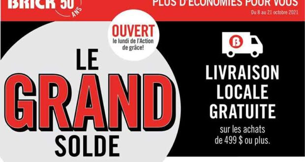 Circulaire Brick du 8 octobre au 21 octobre 2021 : Consultez en ligne les offres et coupons rabais de la circulaire Brick, valable du vendredi 8 octobre au jeudi 21 octobre 2021.