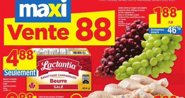 Consultez les ventes, offres et coupons rabais de la Maxi circulaire en ligne, valable du jeudi le 16 janvier au mercredi le 22 janvier 2025.