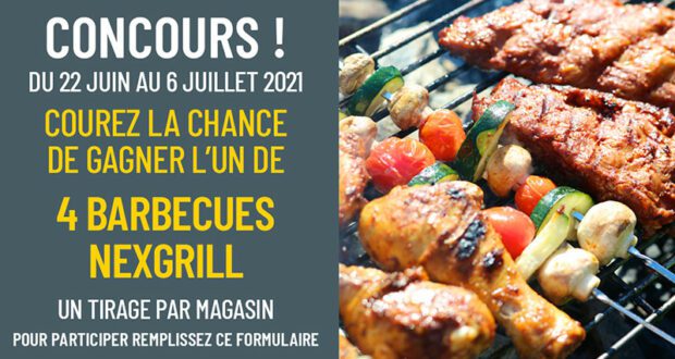 Gagnez 4 Barbecues de Nexgrill : A gagner : 4 Barbecues de la marque Nexgrill. Barbecue au gaz propane à trois brûleurs avec housse de protection incluse.