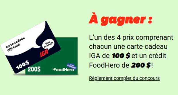 Gagnez 4 prix IGA et FoodHero de 300 $ chaque