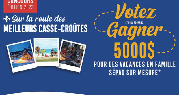 Une (1) participation sera choisie électroniquement au hasard parmi toutes celles admissibles reçues du Québec (ou Canada) pour le casse-croûte ayant reçu le plus de votes au cours de la période du concours sur le site Web.