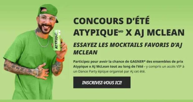 Une affiche autographiée par AJ McLean, trente (30) paquets d’AtypiqueMD (quatre canettes par paquet) + six (6) verres de marque AtypiqueMD.
