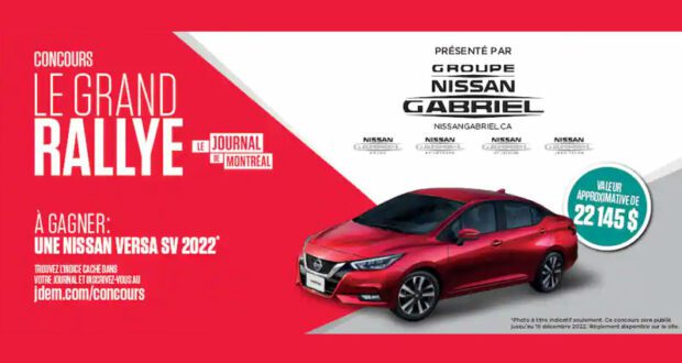 Gagnez Une voiture Nissan Versa SV 2022 (Valeur de 22145 $) : Un (1) grand prix sera attribué, constitué d’une voiture Nissan Versa SV 2022 à boite automatique.