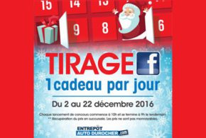 Concours gagnez un cadeau par jour avec Auto Durocher : Participez au jeu concours « Auto Durocher » et courez la chance de gagner un prix par jour. Le concours prendra fin le 22 décembre 2016. Bonne chance! J’en profite
