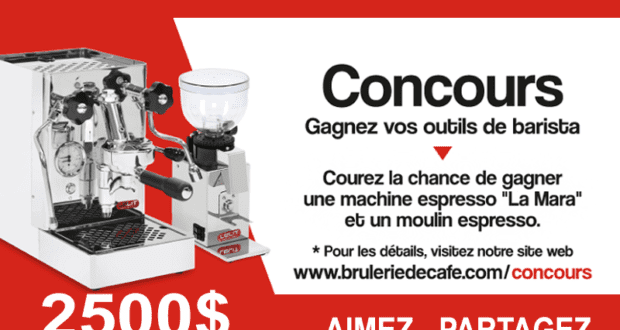 Participez à ce jeu concours gratuit et courez la chance de gagner une machine espresso « La Mara » et un moulin espresso, le tout d’une valeur de 2500$ !