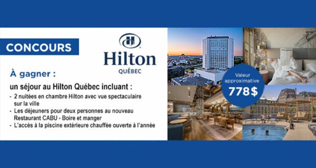 Remportez Un forfait au Hilton Québec de 778 $ : Gagnez un séjour au Hilton Québec incluant :