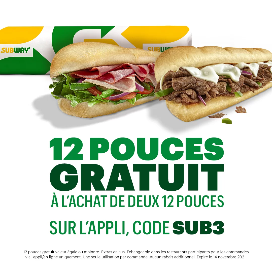 Subway Achetez un 12 pouces et obtenez-en un GRATUITEMENT
