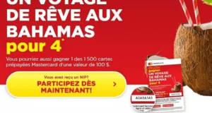 Voyage de rêve aux Bahamas (Valeur de 29’560 $) : Gagnez un voyage de 4 jours et de trois (3) nuits pour quatre (4) personnes à Paradise Island aux Bahamas qui consistera en : un billet d’avion aller-retour en classe économique pour le gagnant du grand prix ainsi que pour ses trois (3) invités (chacun un « invité », collectivement ...