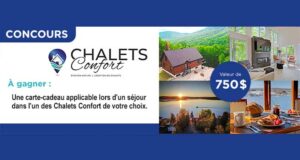 Gagnez un séjour de vacances au Baluchon (750 $) : Courez la chance de gagner un séjour de vacances au Baluchon pour deux personnes incluant : – Une nuitée dans l’une des superbes chambres luxueuses – Un souper table d’hôte gastronomique de trois services – Un déjeuner gourmand – Le passeport plein air et équipements gratuits – L’accès aux piscines ...