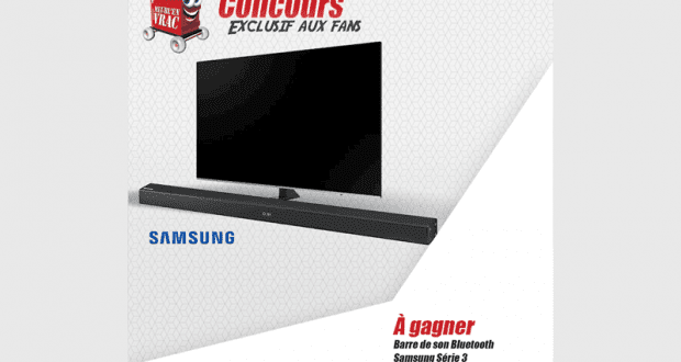 Une barre de son Bluetooth de Samsung série 3 : Concours Meubl’en Vrac, Gagnez Une barre de son Bluetooth de Samsung série 3, d’une valeur de 180 $.